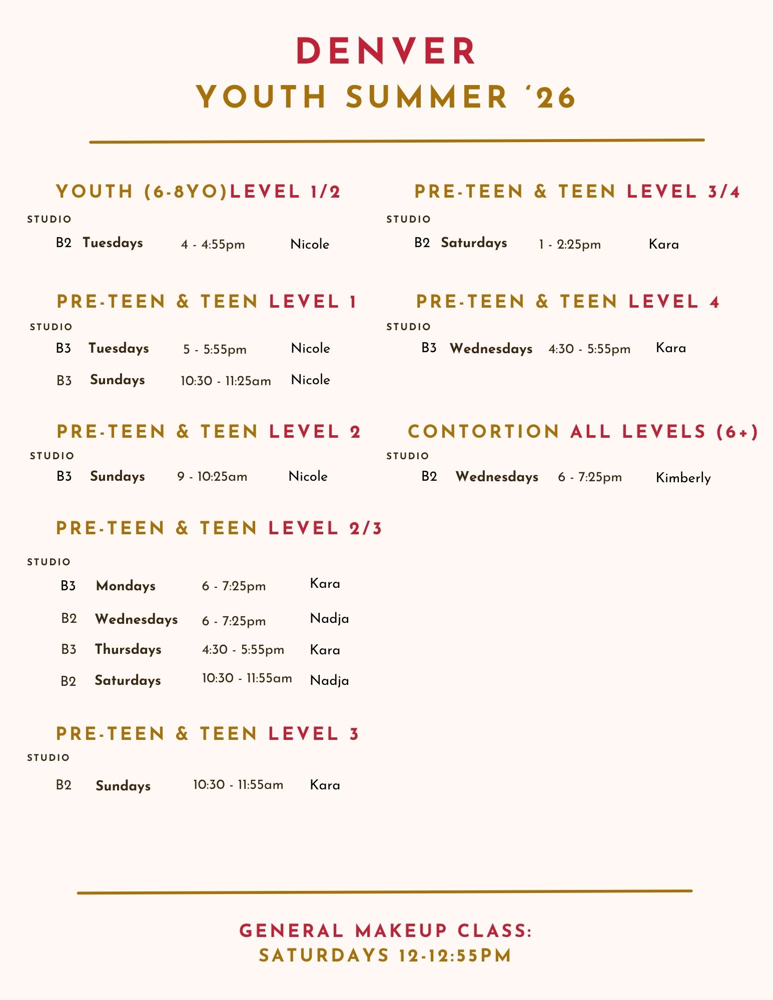 Also view our aerial classes in Denver for Pre-Teen, Teen, and Aerial Dance Camps.