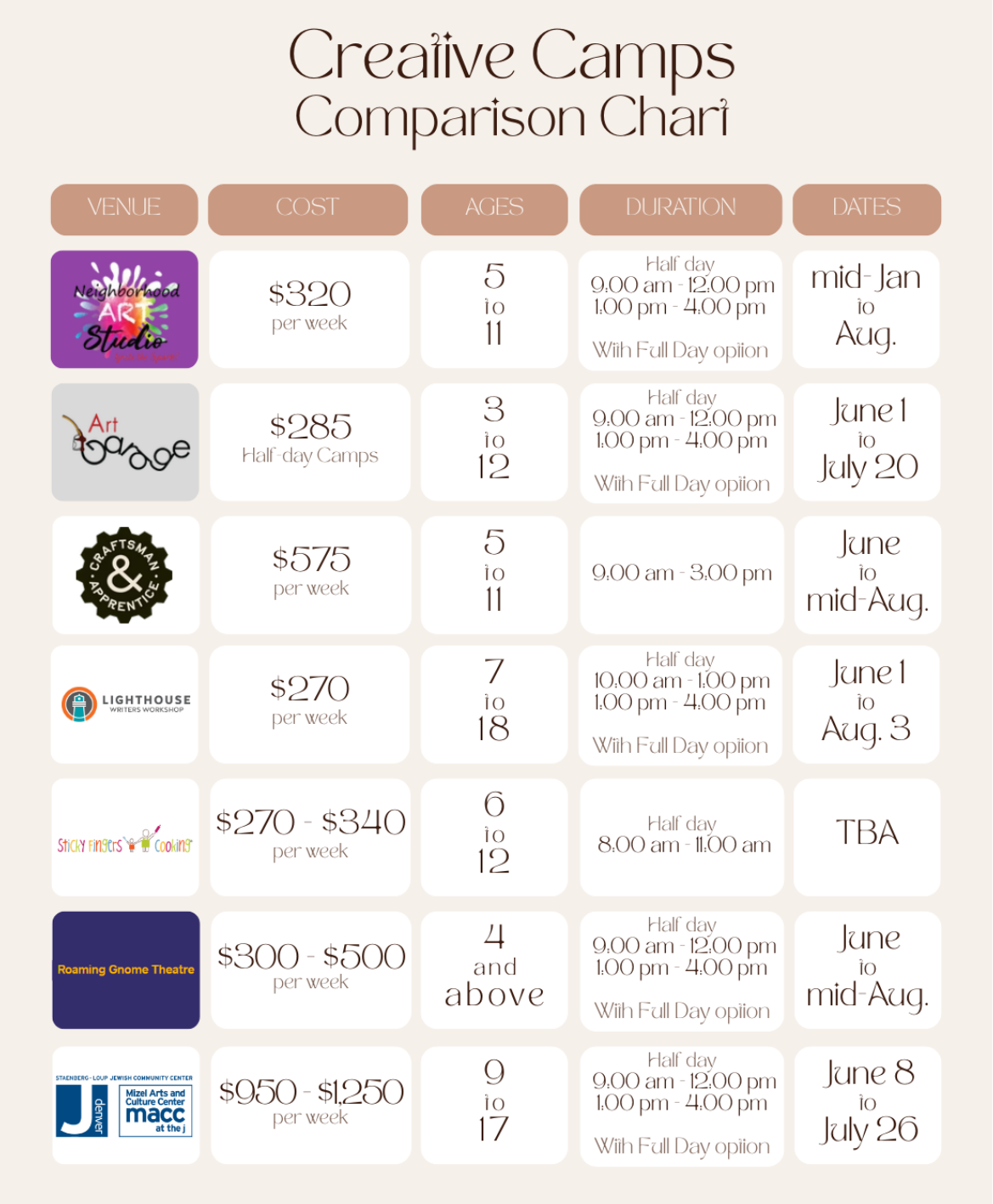 week-long summer camps!