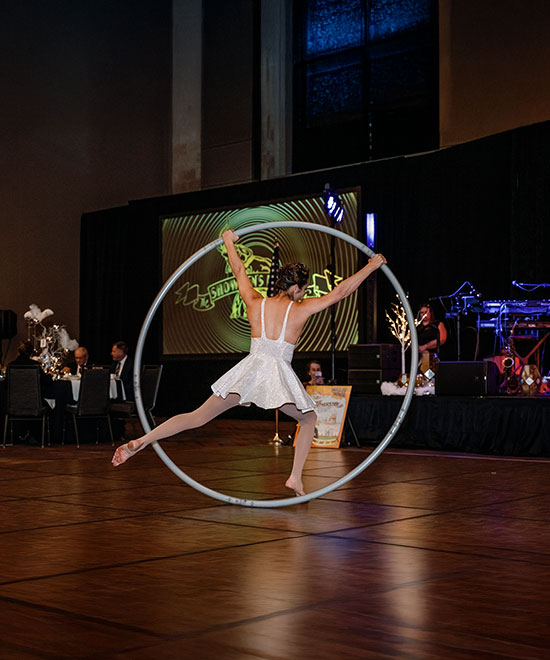 We offer “act” and “ambiance” style aerial circus performers. Single acts are choreographed and are shorter in duration, approximately 5 minutes. This is also an exciting way to open events or offer a “show” style performance.
